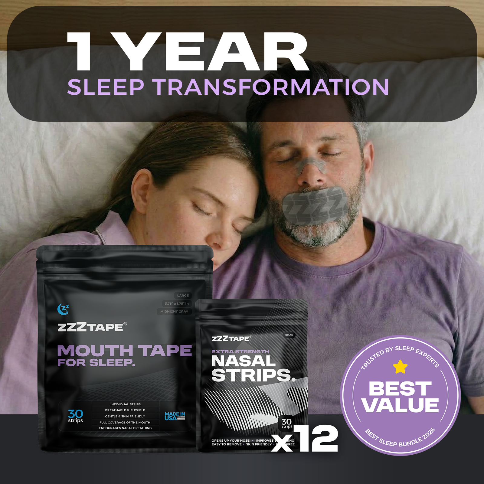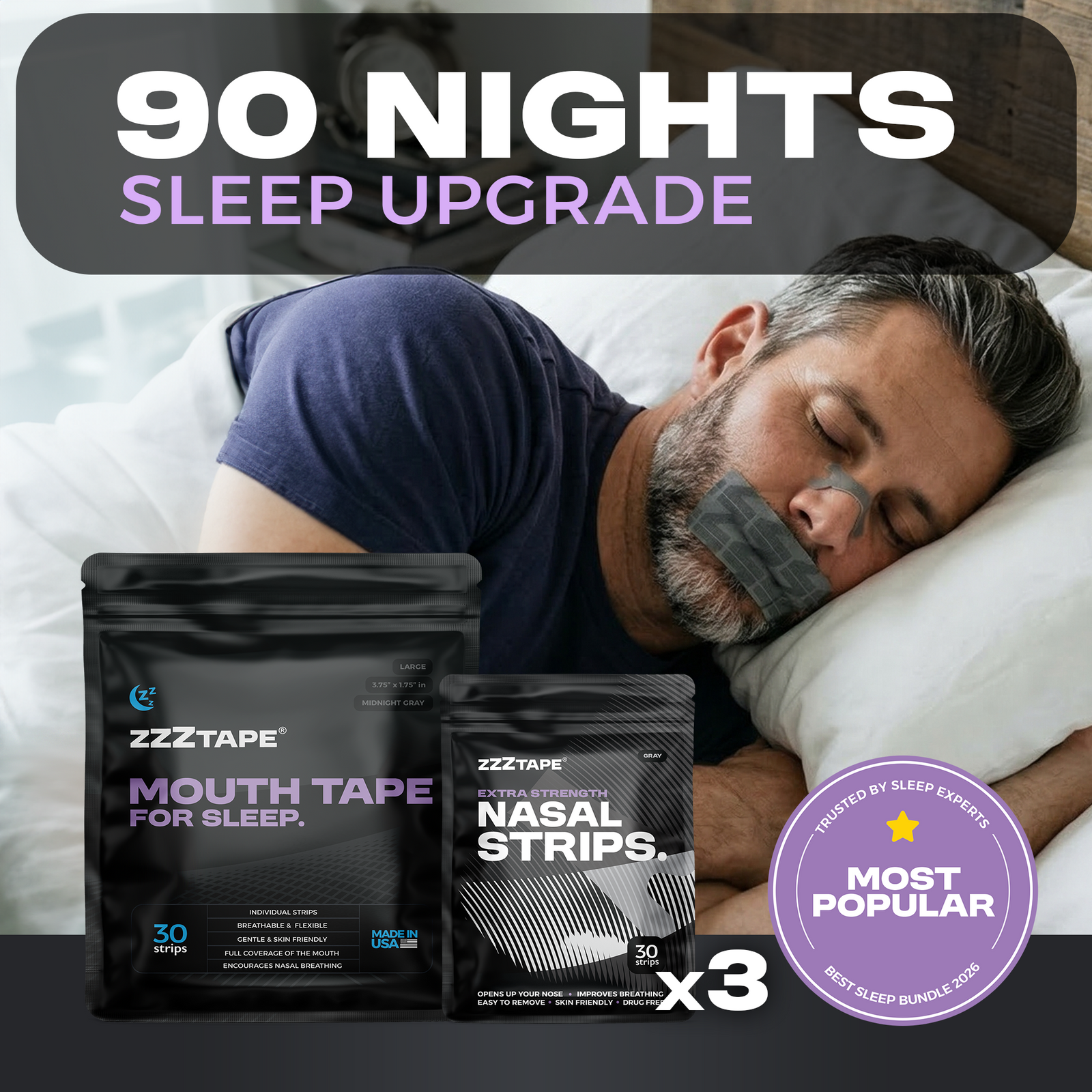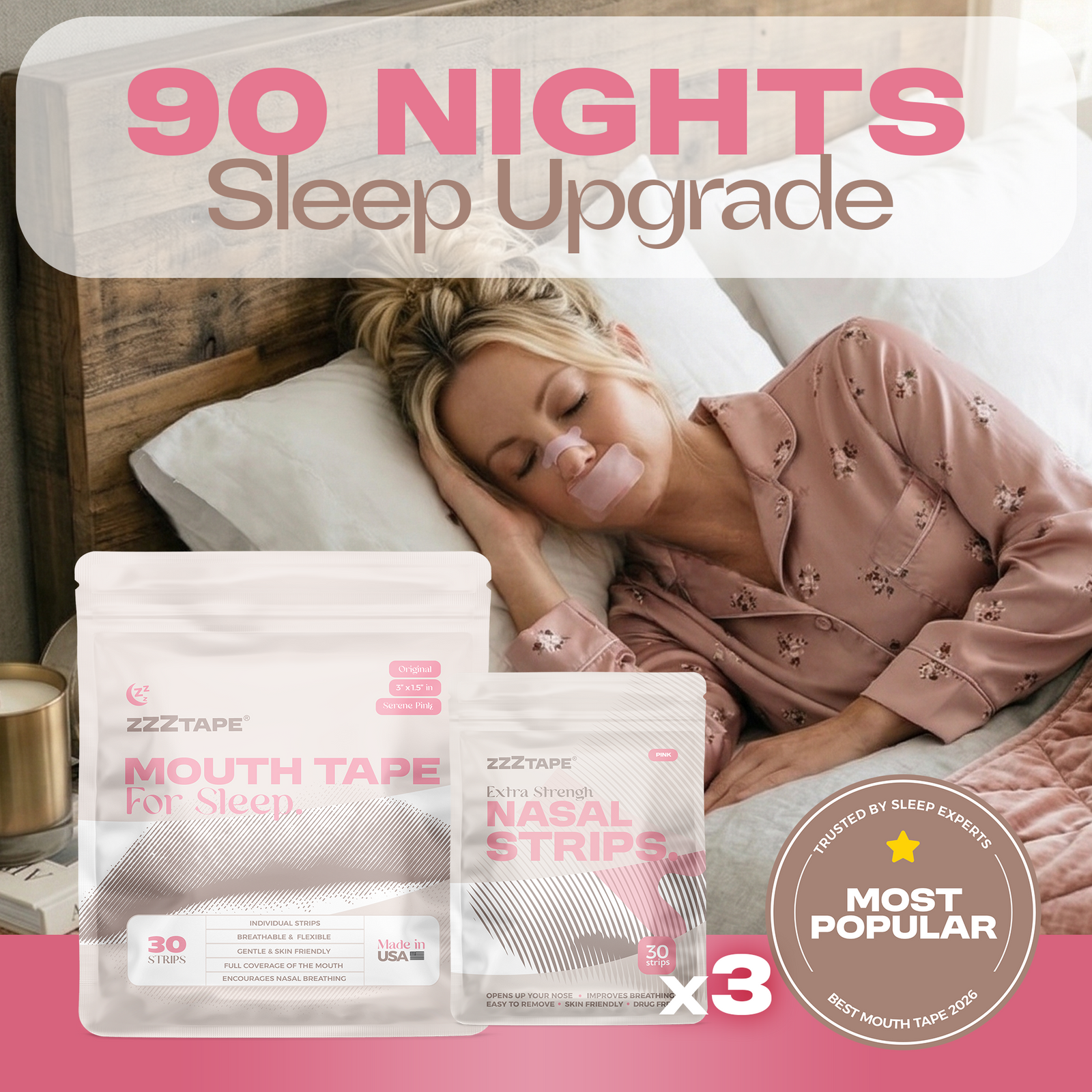 Enjoy a restful night sleep with the world's most flexible, breathable & comfortable mouth tape and wake up feeling like a million bucks!
