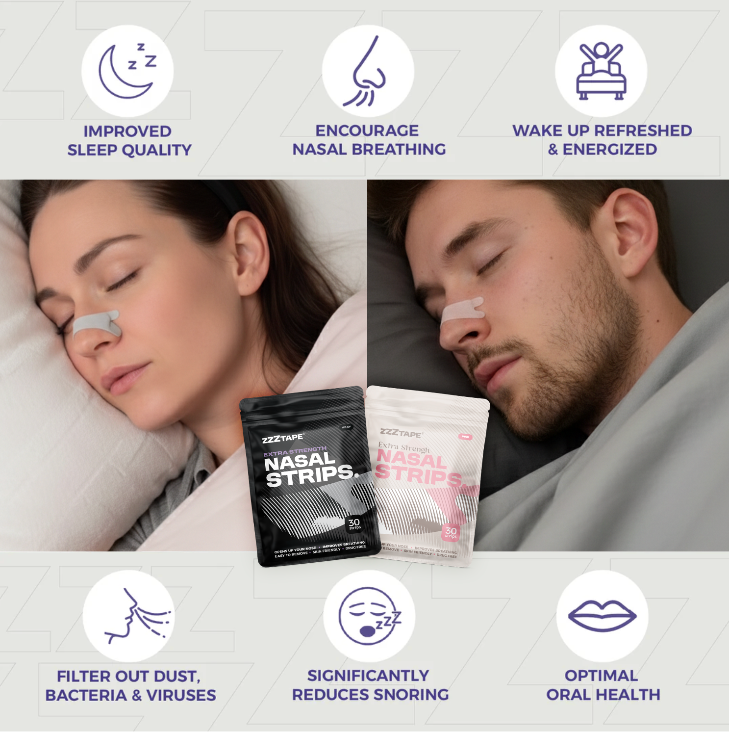 ZzzTape: Extra-Strength Nasal Strips for Snoring & Congestion